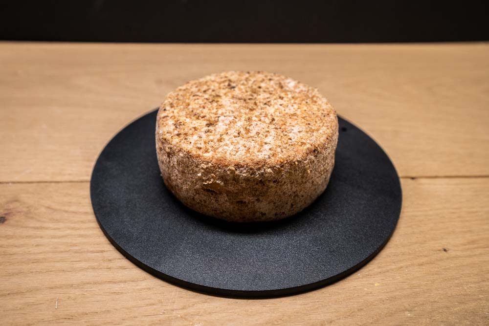 Fromage au lait cru de vache, à pâte molle et croûte lavée puis chapelure à la bière brune de Thiérache.